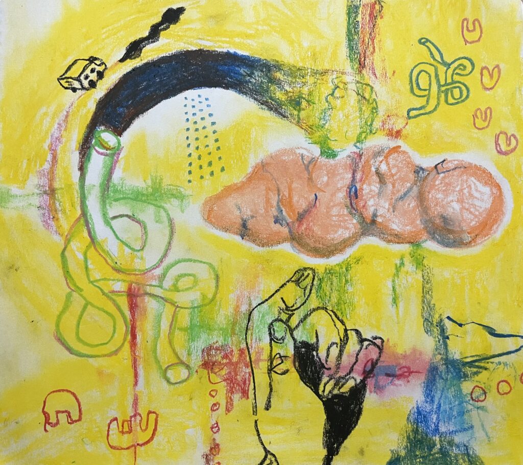 今日の絵はひさびさの全然水を使わない水彩クレパス